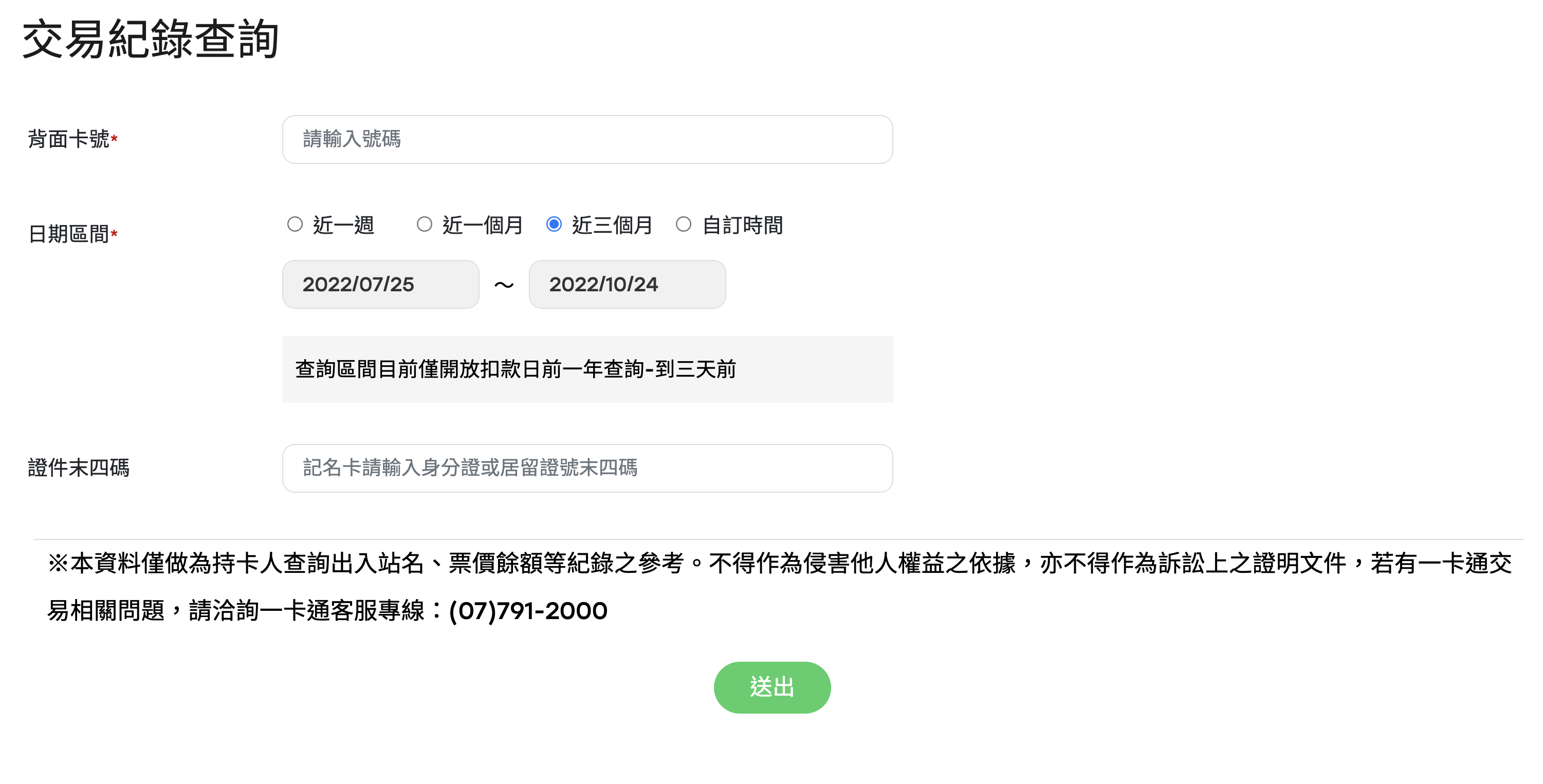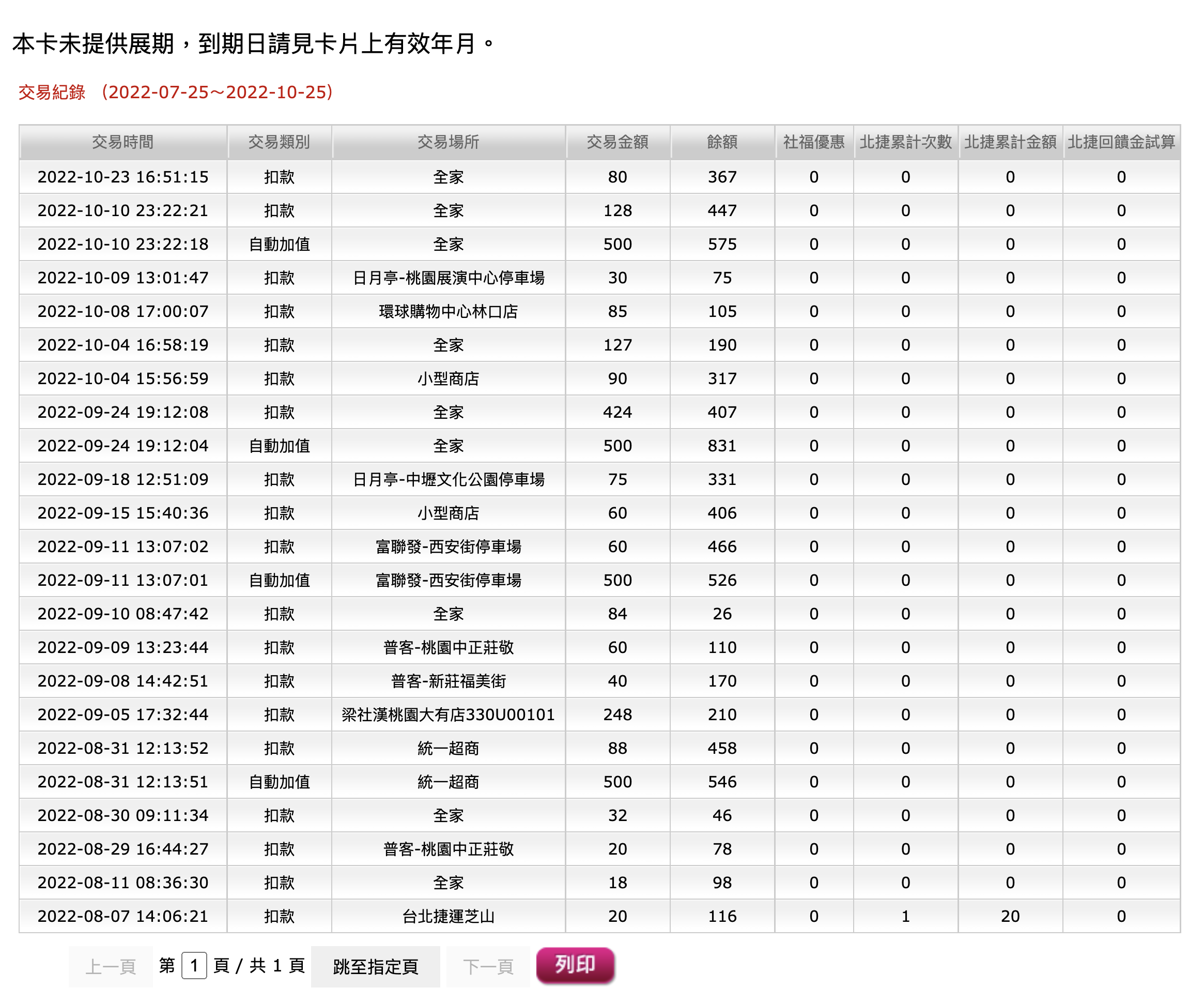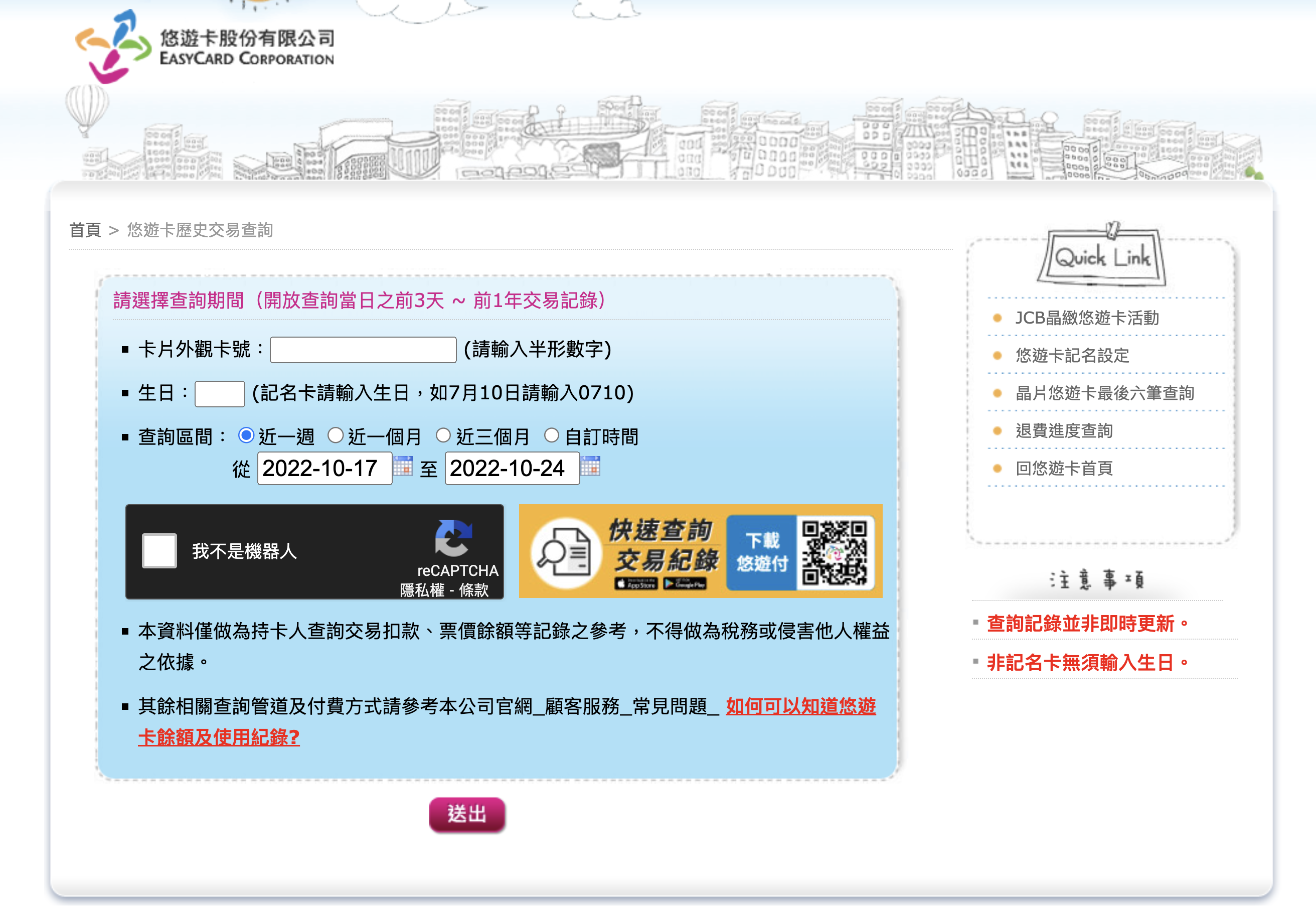 一卡通也是一樣,輸入卡號後,選擇日期,查別在於悠遊卡是如果記名卡就輸入生日,一卡通則是輸入身份證末四碼,快去試看看吧。
