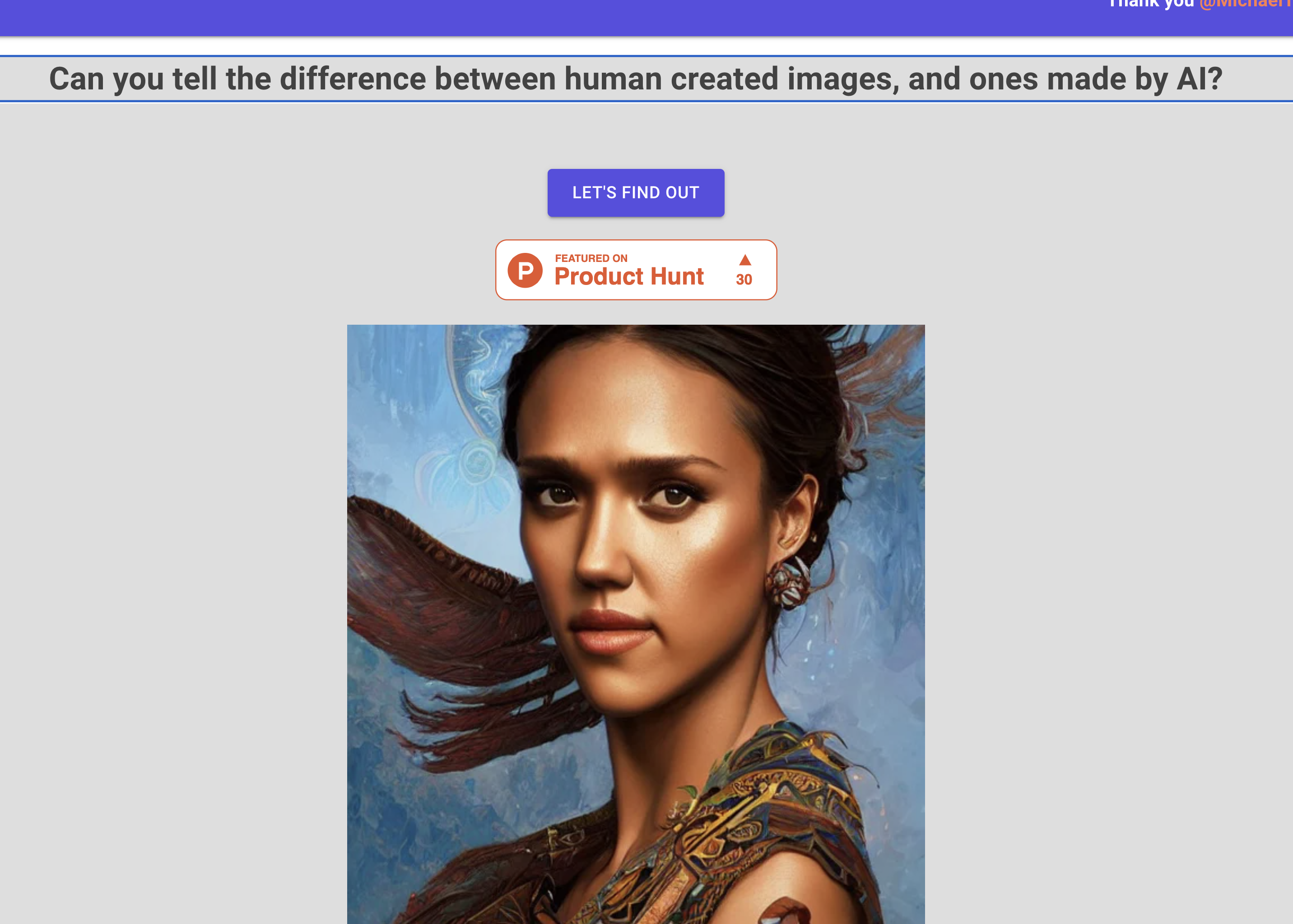 網站:https://human-or-ai.art/進入網站後,決定開始挑戰的話,就按下 LET's FIND OUT 開始吧。