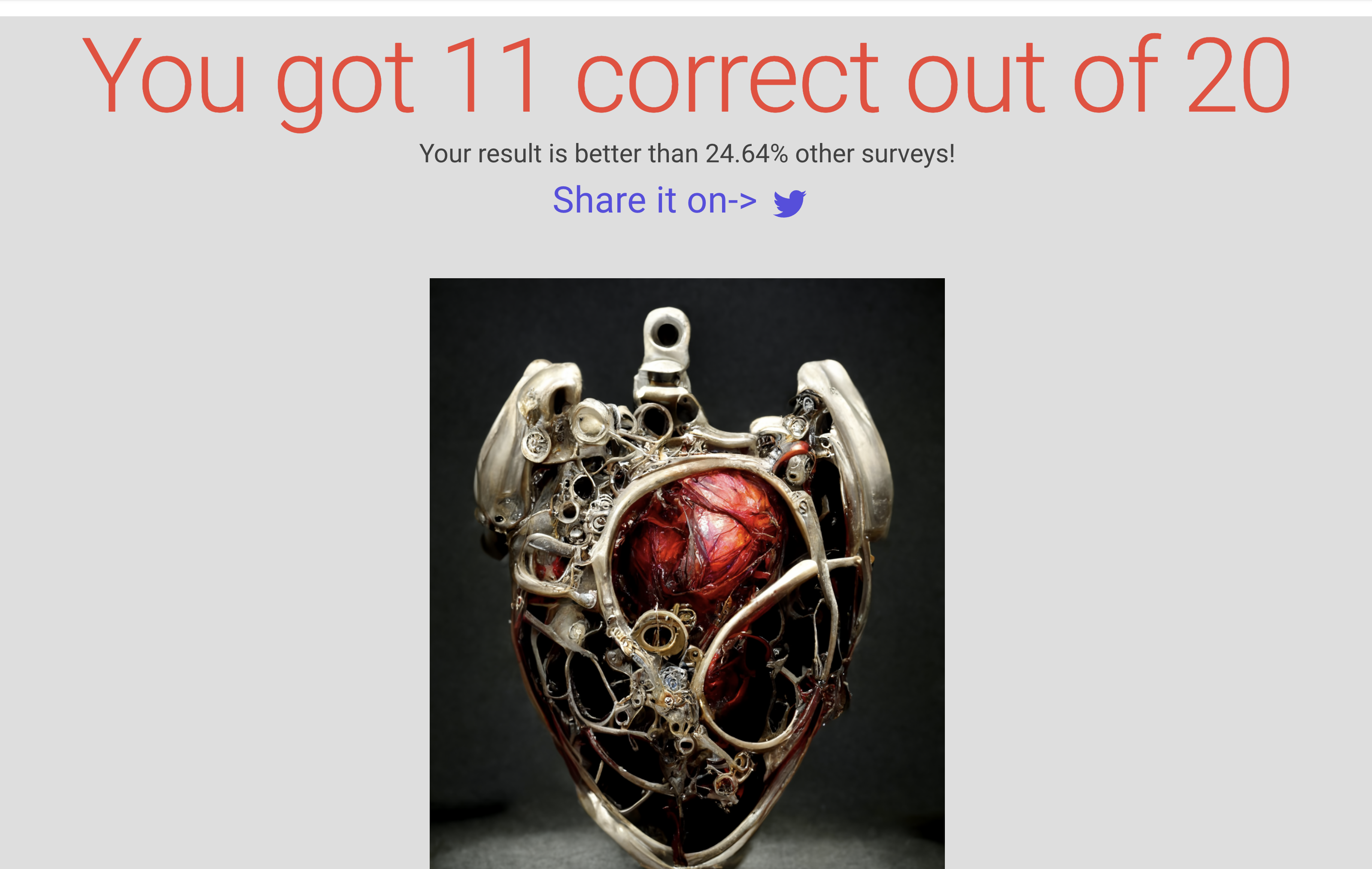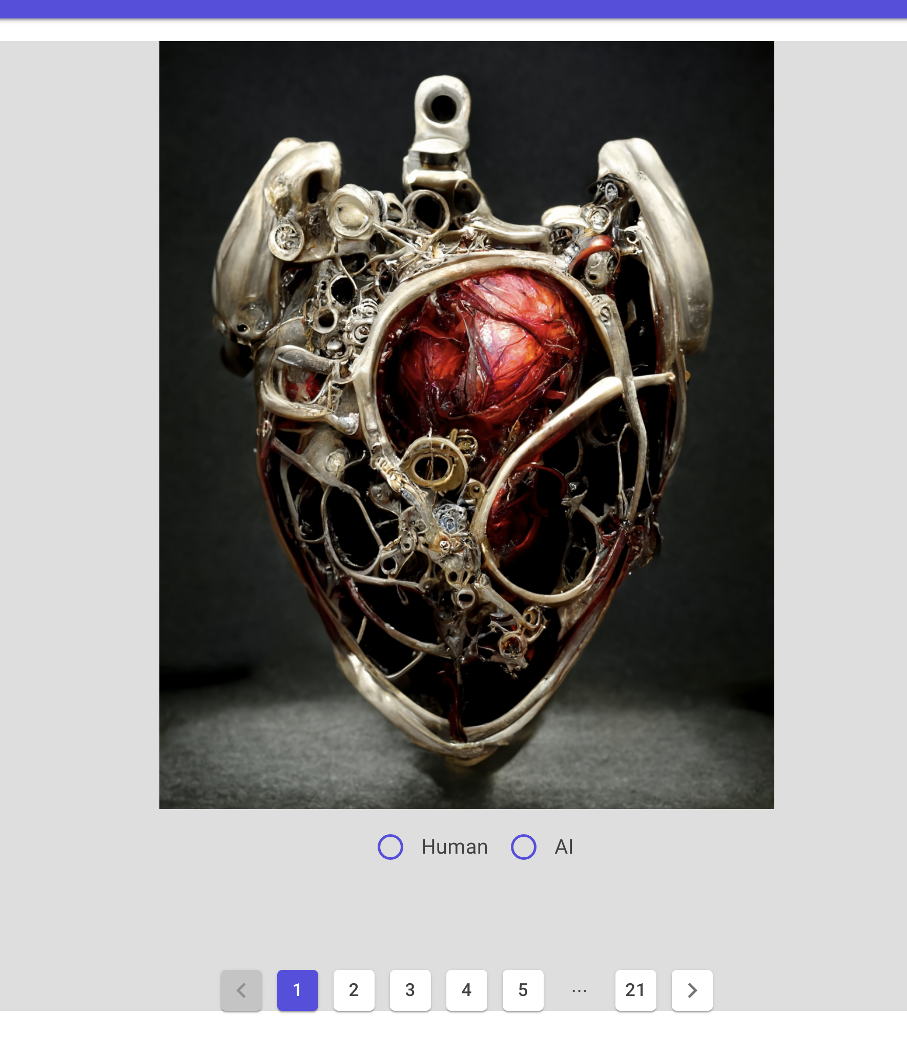 預設都是 21 題,一題一題的往下選擇是人還 AI 畫的。