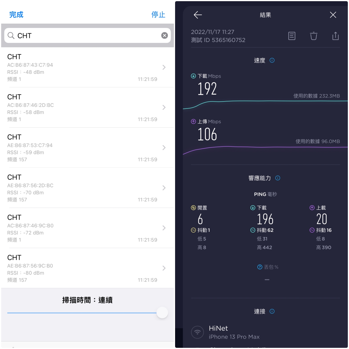 - 速度測試:下載 192Mbps、上傳 106Mbps
