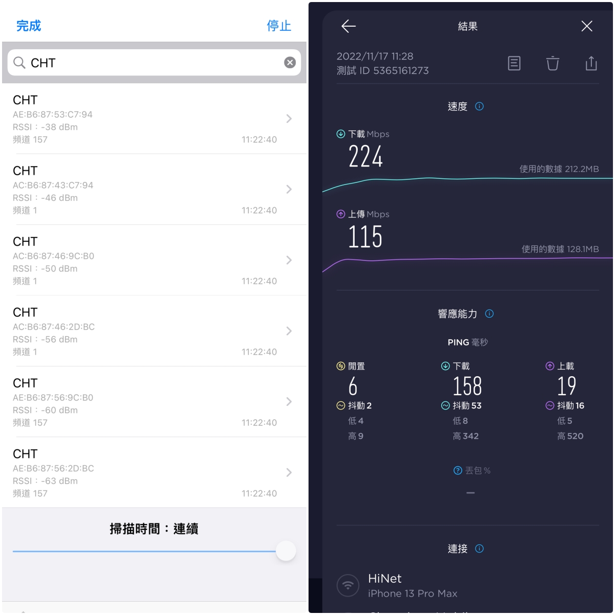 - 速度測試:下載 224Mbps、上傳 115Mbps