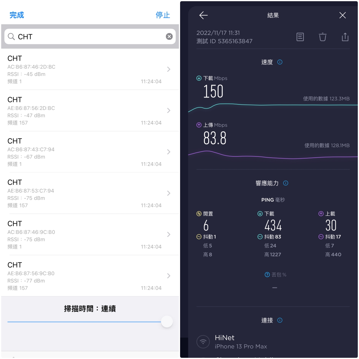 - 速度測試:下載 150Mbps、上傳 83Mbps