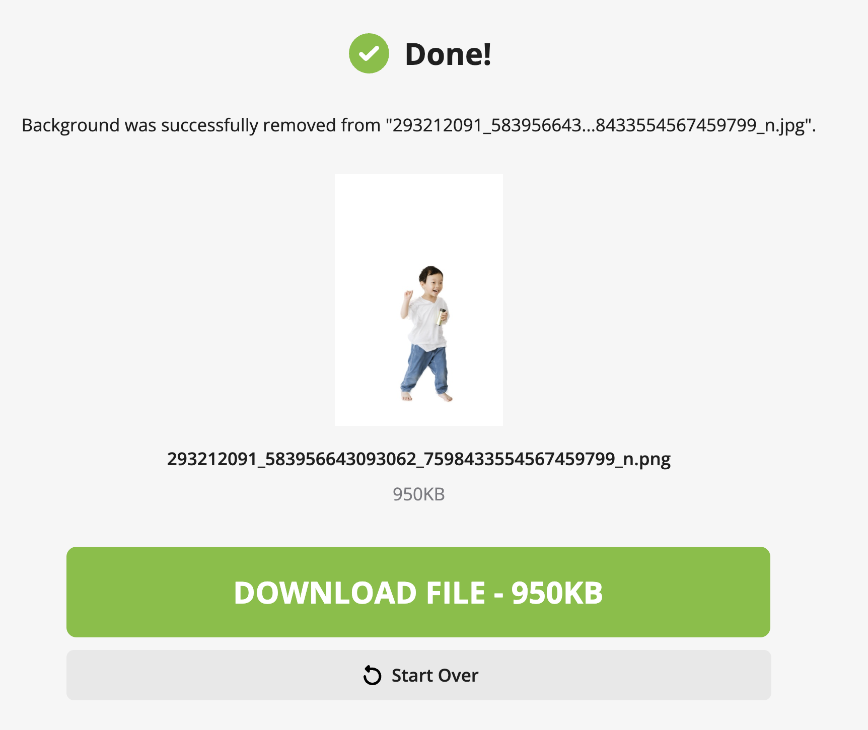 大概等候 10~20 秒就會完成去背,並可以下載,IMGCandy 的去背速度不算快,不過免費加上可以下載原解析度也是很不錯的。