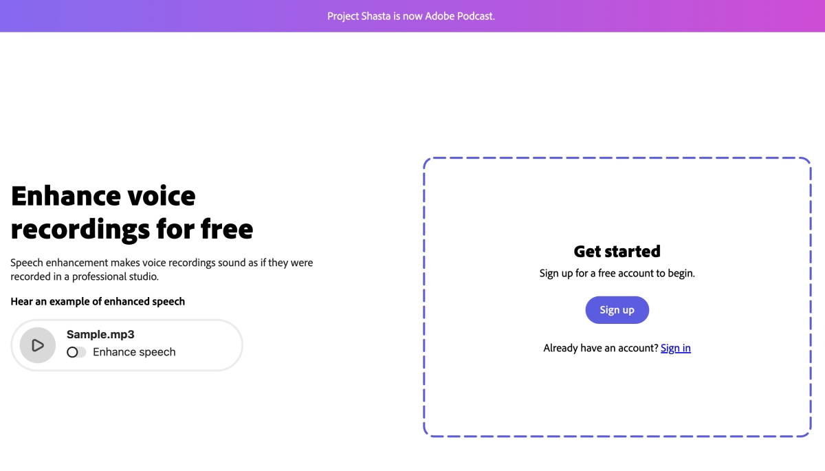 現在 Podcast 相當的流行,很多人也想要用自己的聲音創造一片新天地,不過對於錄製聲音這件事,除了有麥克風跟電腦之外,想要製作出具有專業感的聲音品質其實不是那麼容易的一件事,包括麥克風的選擇、架設距離,講話的聲音大小,以及聲音的後製調整等,最重要也最基本的二件事,人聲的後製及麥克風調整,如果沒做好的話就先壞了一半,Adobe 推出了 Adobe Podcast 服務,可以幫你一鍵修飾人聲,並且協助調整麥克風的使用,完全不懂的話,至少用這服務的工具來幫你吧。