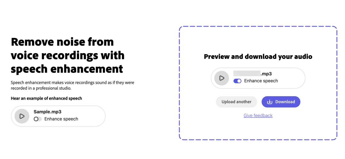 上傳後就會幫你直接處理,然後就可以按 Download 下載回來聽看看跟你原本音檔的差異,阿湯是隨便用手機錄製了一段話,處理完後明確的感受到聲音修飾的更乾淨一些,底噪也大幅的降低,效果算是相當不錯。