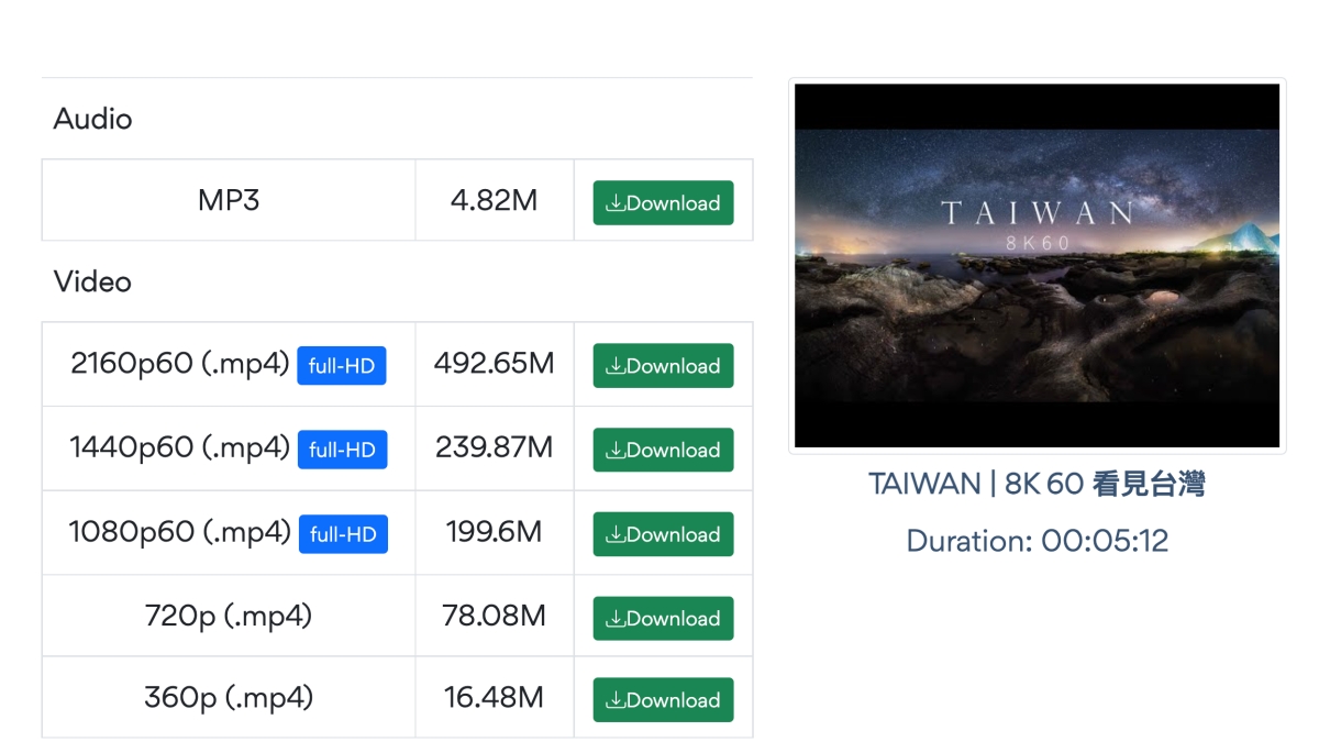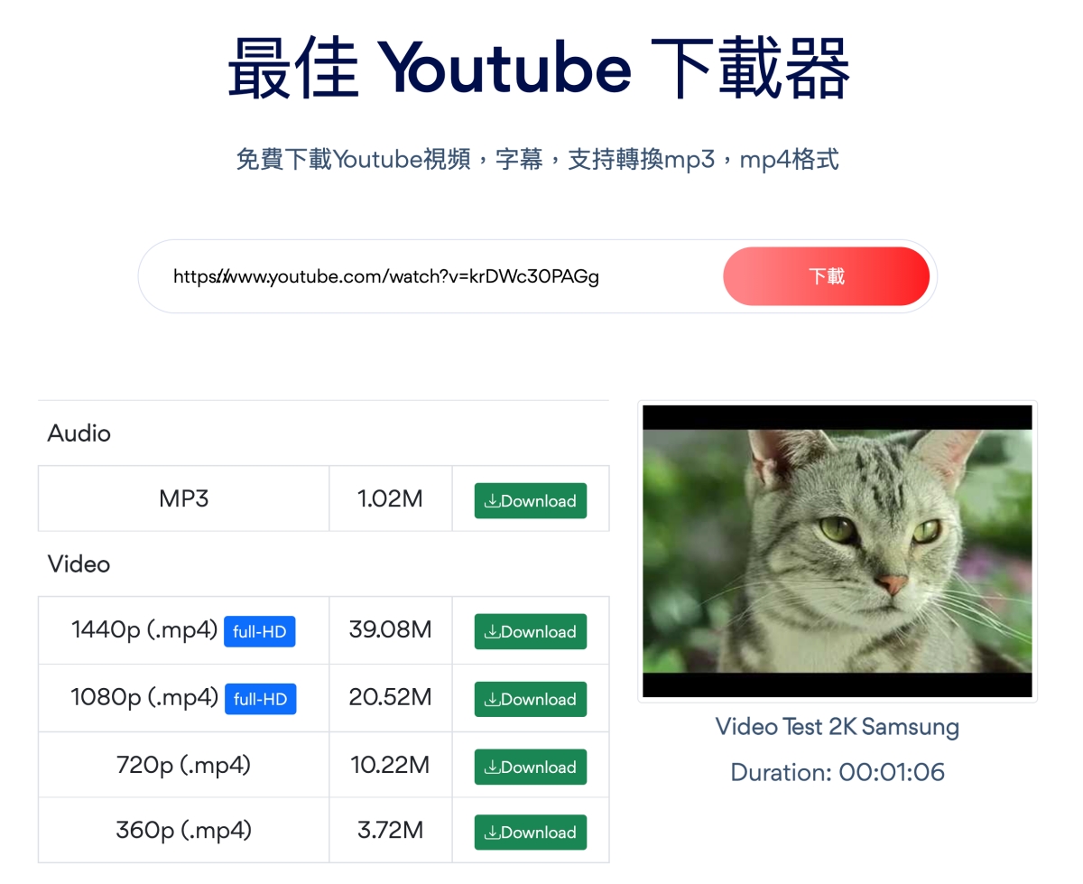 - 免費且高品質的youtube視頻下載和解析,如360p、1080p、SD、HD、FullHD、2K和4K。