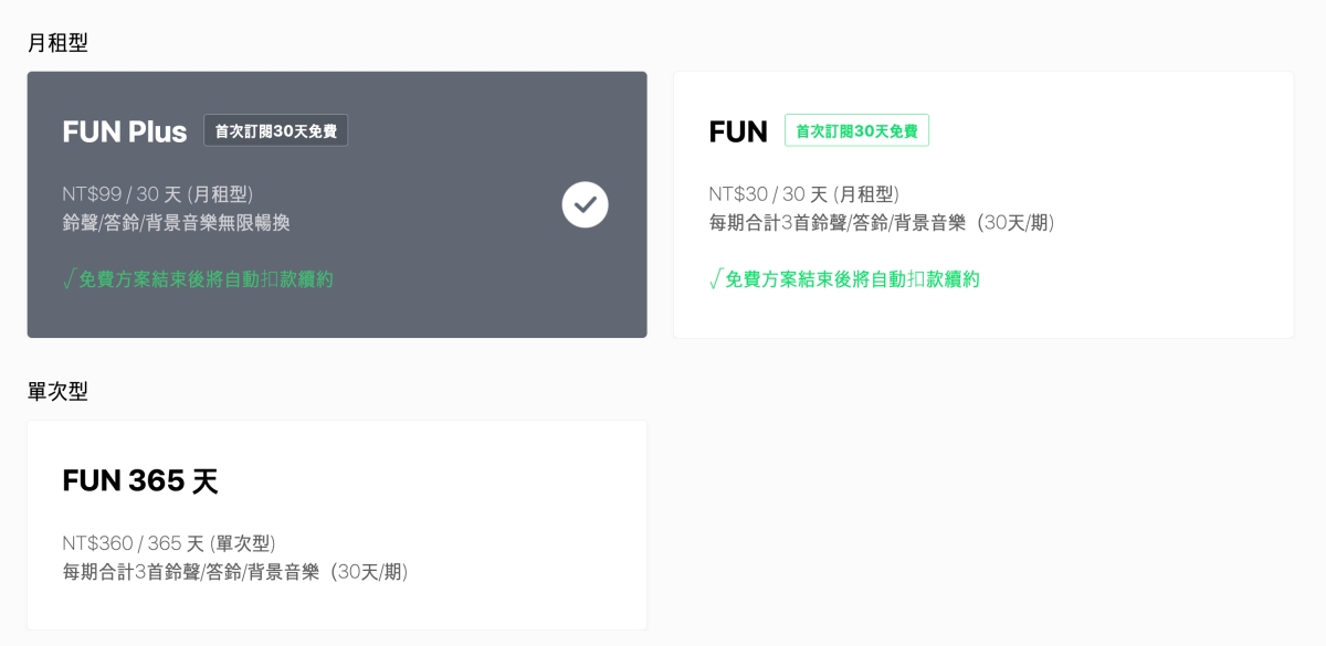 最後分享一下 LINE Music,2019 年推出,於去年 2022 年 8 月宣布在台灣停止音樂串流服務,僅會保留直播跟鈴聲服務,所以現在看到的月租服務,只剩下鈴聲,答鈴,背景音樂,不過就變每首歌曲都可以試聽 30 秒,付費服務則是可以直接將音樂設定為鈴聲或背景音樂,算是稍稍可惜,畢竟 LINE 在台灣用戶那麼多,其實應該撐一下就能做起來啦.....