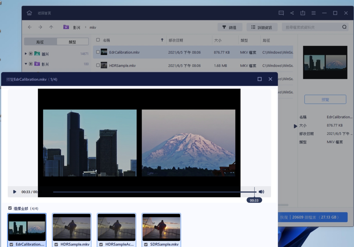 接下來我試了預覽照片、影片,通通都能正常查看,而且復原也都沒有問題,光是測試硬碟資料救援跟記憶卡的部份,就可以看出「EaseUS Data Recovery Wizard」強大之處。