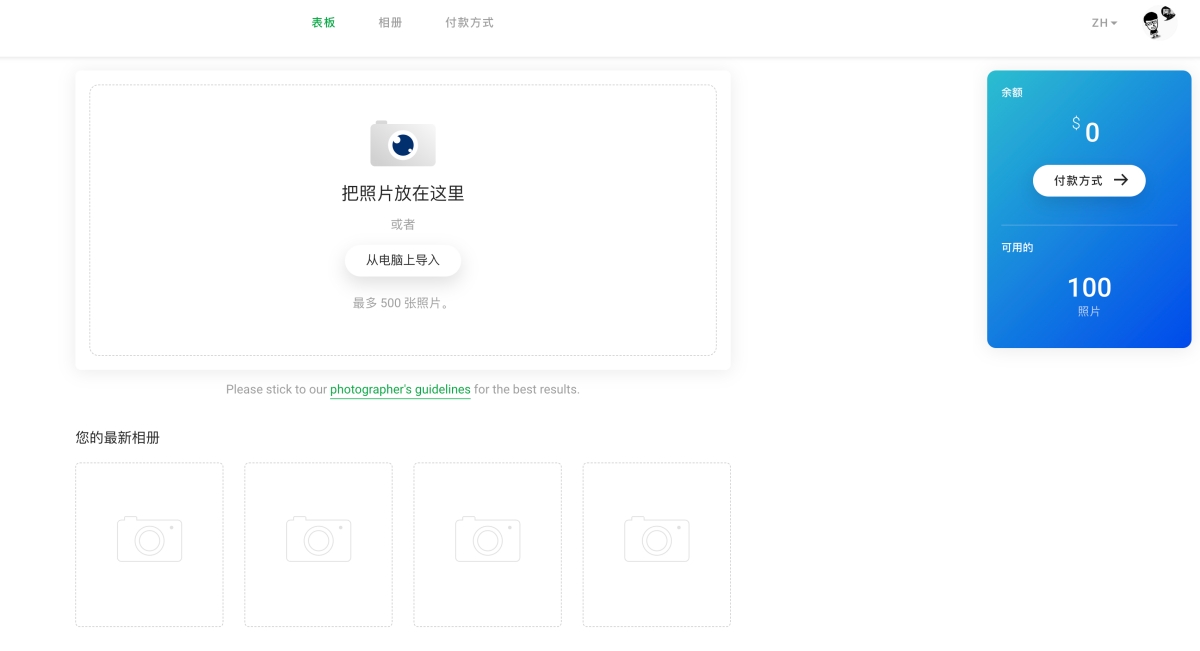 在後台裡,可以直接將要去背的照片上傳,一次最多上傳 500 張,不過免費額度也就 100 張啦,如果不夠用,其實額外多註冊幾個帳號登入也是可以用的,如果你有 10 個 Google 帳號,那就一個月可以免費使用 1000 張了耶...