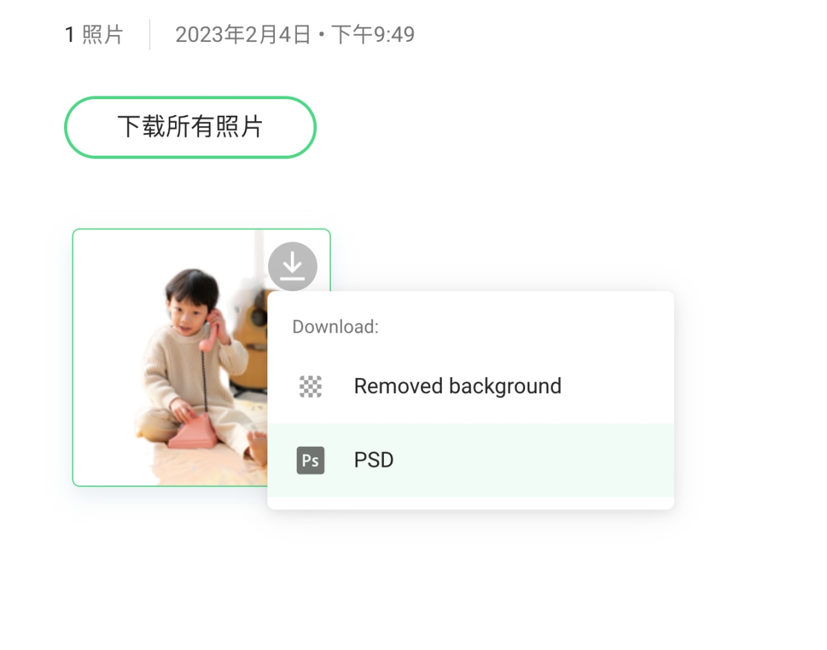 而 Pure Photos 最大的特別之處,就是能夠下載為 PSD 檔案,在下載時就能自己選擇。