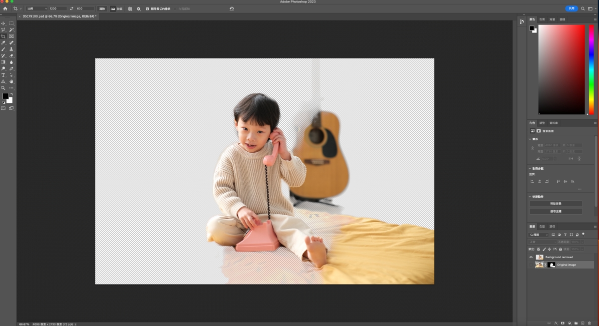 最後我選了一張背景相對乾淨的照片嘗試去背,果然就去的還蠻好的,但不得不說,臉部附近的去背,真的蠻細緻的,跟其它 AI 去背服務相比,是處理的更好的,不是用邊緣模糊的方式處理,從髮絲的部份就可以看的出來了。