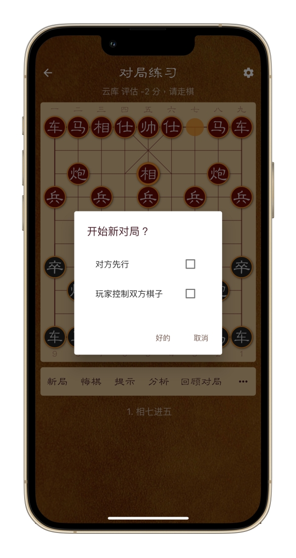 對局的部份,預設是和電腦對弈,如果你想和朋友對弈的話,可以把玩家控制雙方棋子勾選起來,這樣就可以和朋友一人控制一邊進行對弈了,不過電腦還蠻強的,大家也可以試看看。