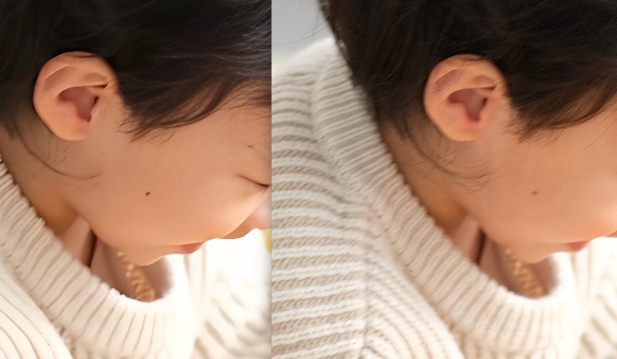 仔細看頭髮、耳朵、下巴,整個都清晰了不少(左邊是強化後的),所以如果你有翻拍一些老照片的話,不妨來試看看這個服務,將照片的畫質更加強化,可以保存到更好的照片哦,快去試看看吧。