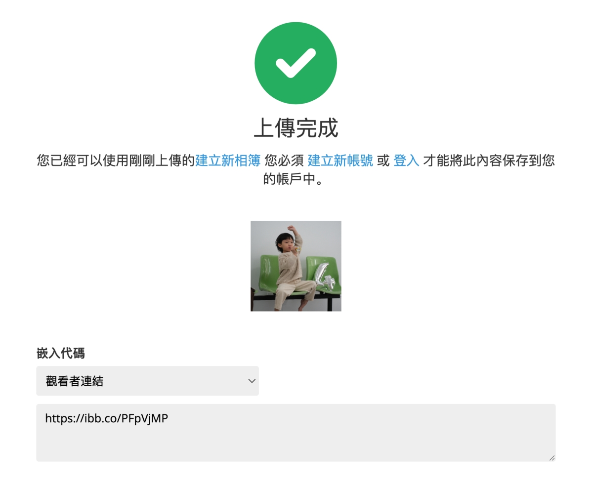 上傳完後會提供一組連結,將他複製給朋友就可以使用了。