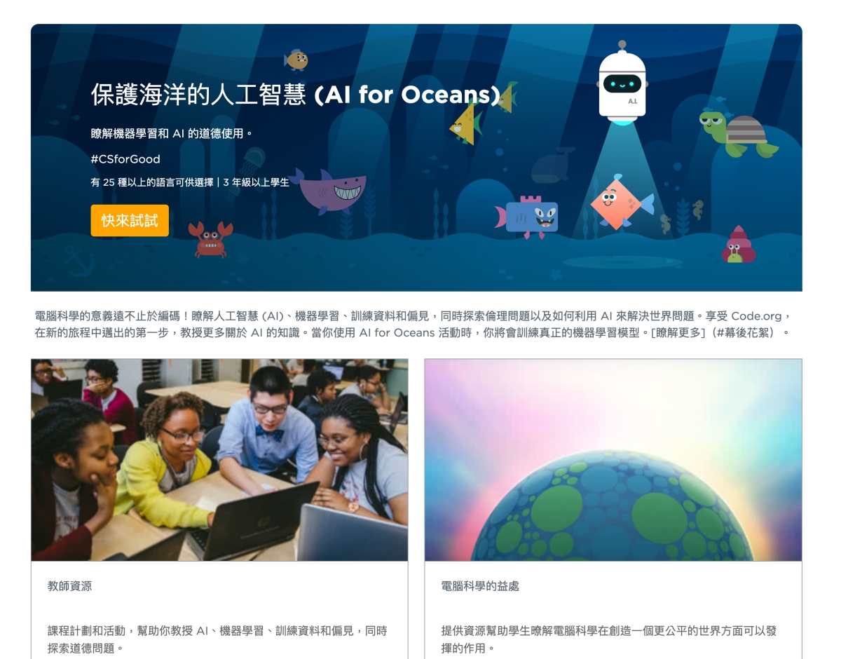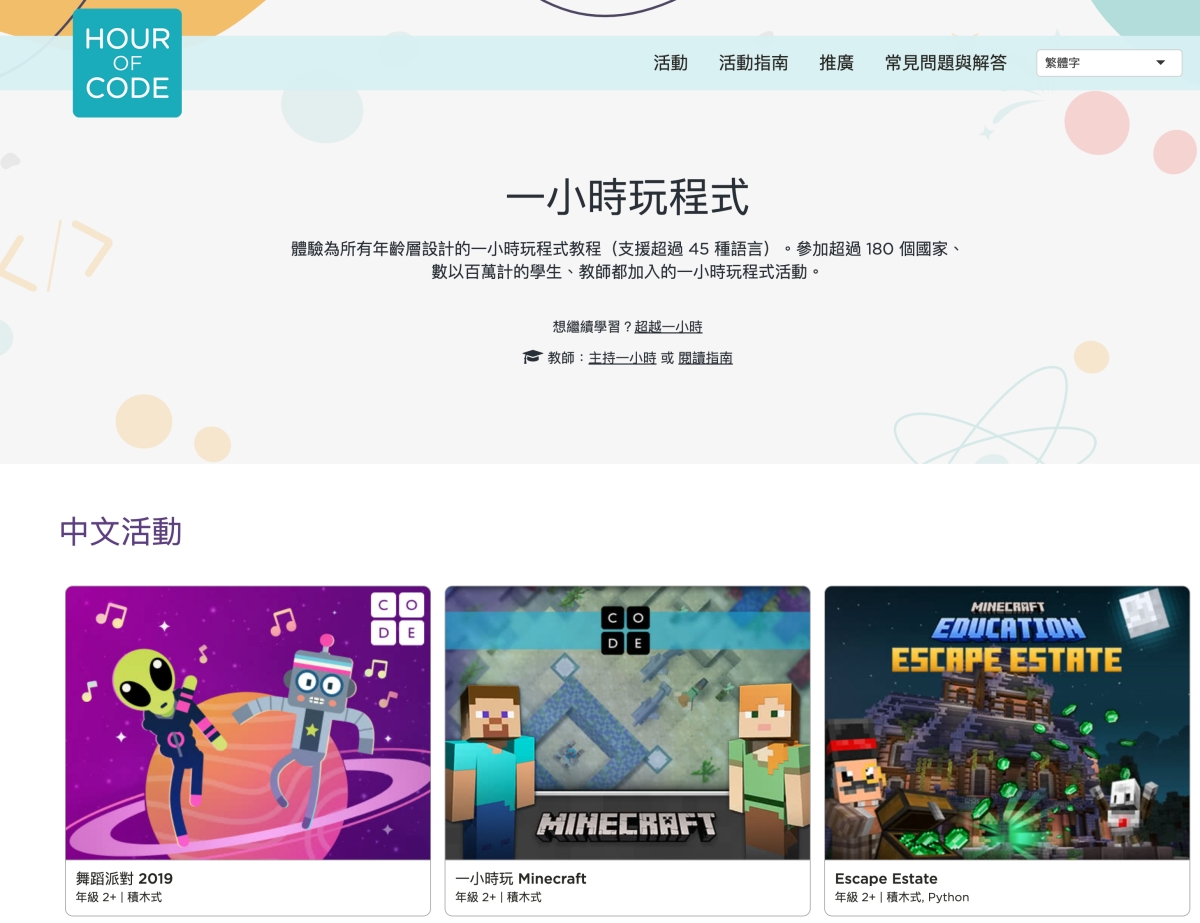 網站:https://hourofcode.com/ca/zh/learn