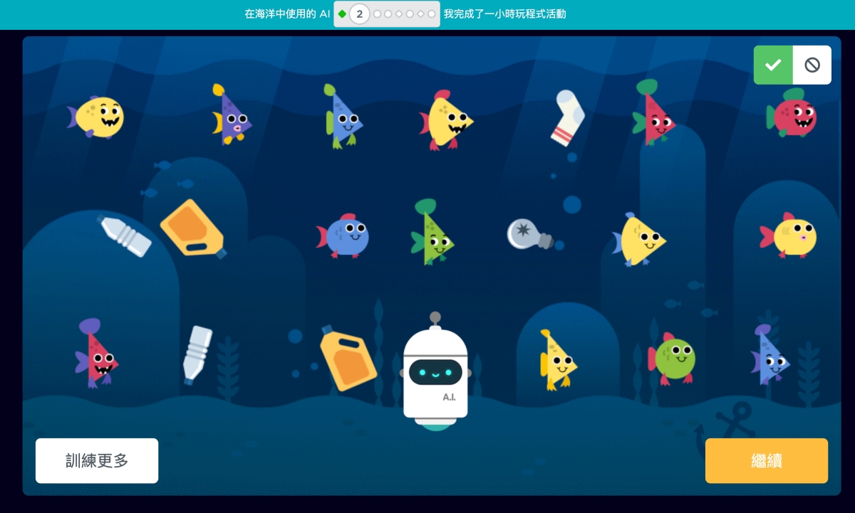 比如像這個保護海洋的人工智慧,點擊後,再點擊開始就可以進入學習。