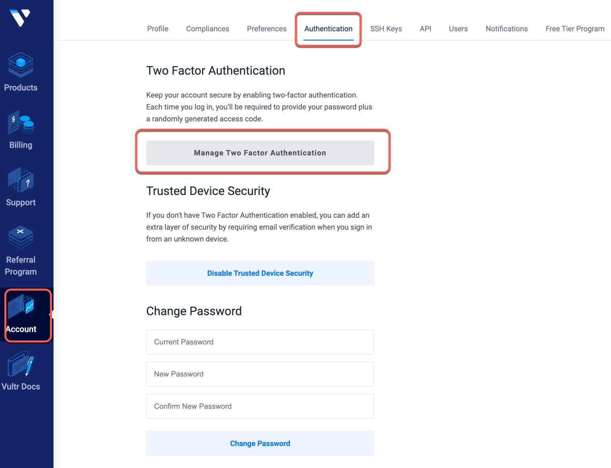 成功註冊後,就可以先來完成申請條件,第一個是二階段驗證,這很簡單,登入帳號後,在後台 Account > Authentication,點擊「Manage Two Factor Authentication」。