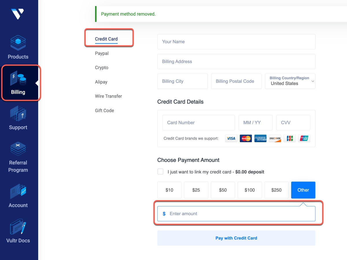 第二個條件:綁定付款方式,方式有很多,你可以任選一個,信用卡、Paypal、Crypto 或是 Aipay 都可以,以信用卡來說就填完全部資料綁定就可以,不過他還會要求你最少儲值 5 USD 進去進行綁定,這部份就看各位了,這是一次性費用,因為我選擇 0 元時不讓我往下啊。