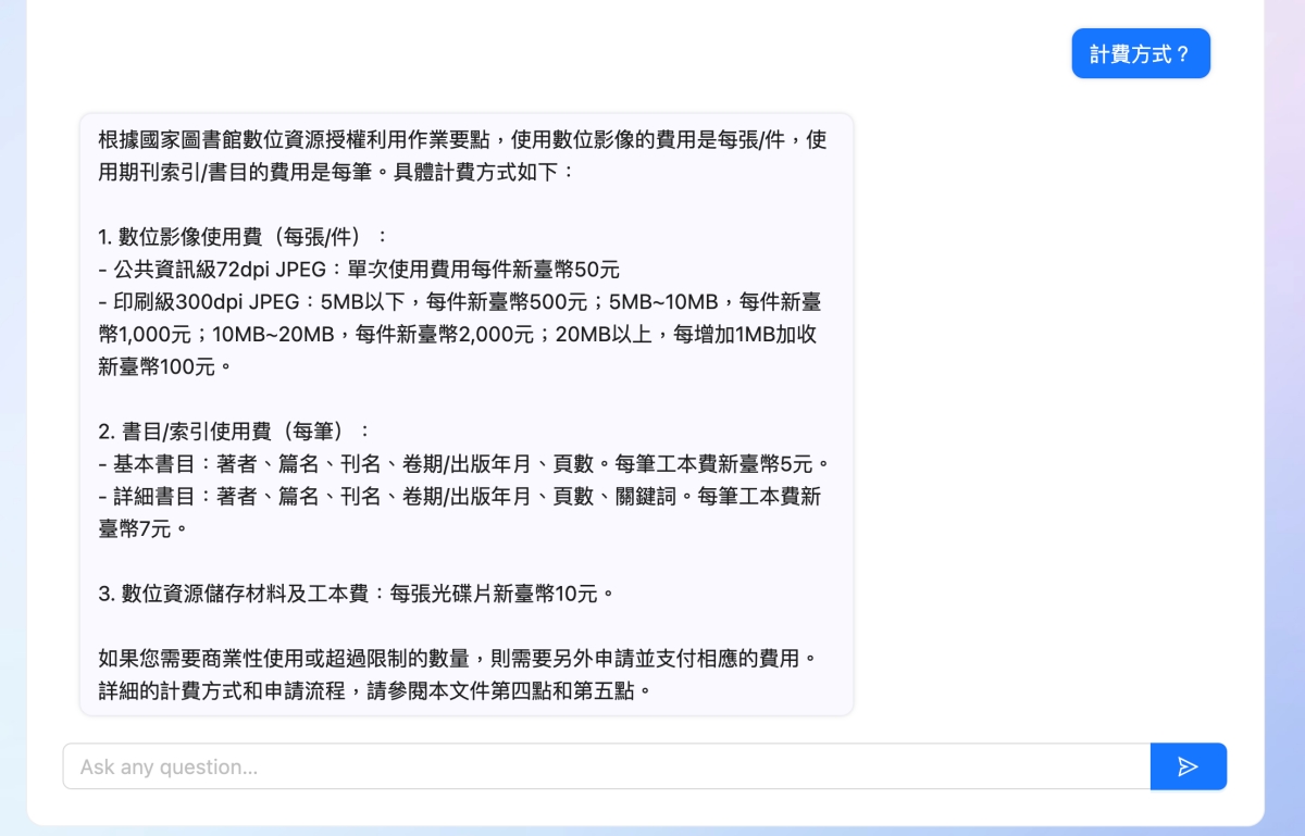 比如我直接問了計費方式,他就會只挑出計費方式來回覆你。