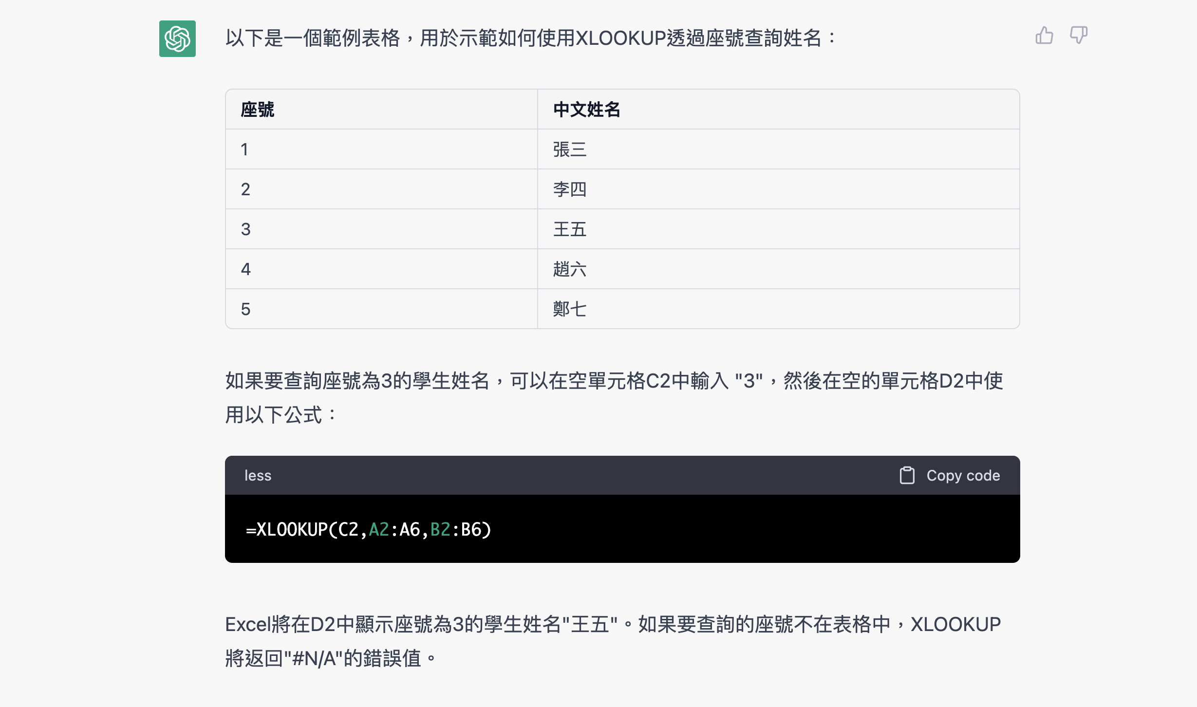 反之,我們也可以提供條件後,讓 ChatGPT 去產生範例教學如下,是不是非常方便呢?