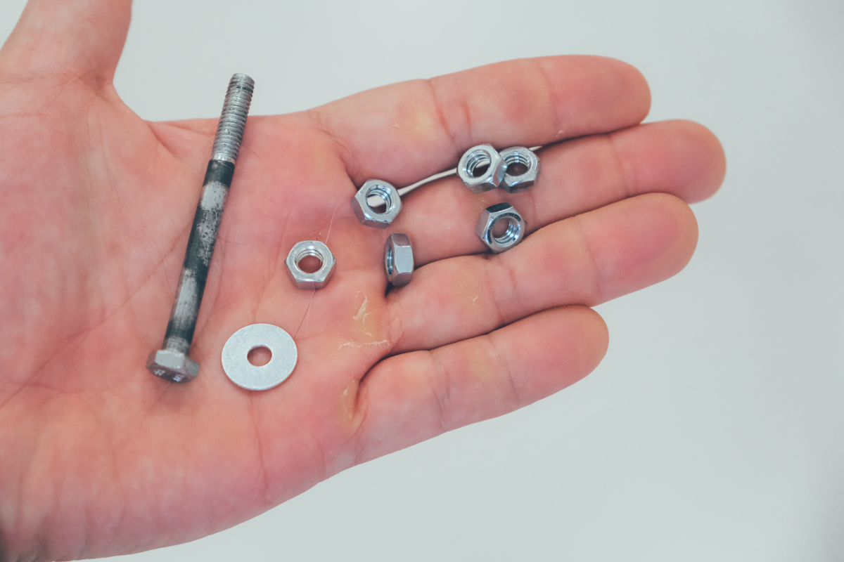 接下來就進入大家選擇掃地的重點了,就是清潔能力,我就簡單的測試二個,一個是很重的,一個是粉狀,而重物,一般只有放螺帽測試,我直接加了一個很薄的墊片,以及一個超長的螺絲,大家猜猜會不會成功?