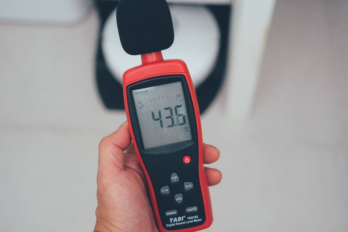 首先是什麼東西都沒開,我家中的噪音基準值是 43.5dB。