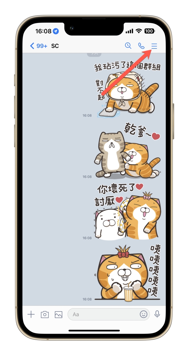想要使用這個所有相簿的功能很簡單,目前沒有在外層直接放置一個專門的功能,想要檢視的話,直接點擊任一個聊天視窗或群組,然後點擊右上方的功能列表。