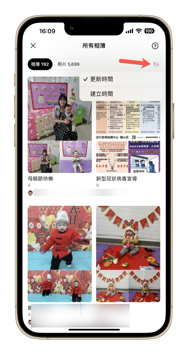如果想要變更排序的話,目前有更新時間以及建立時間二種可以選擇排序,大家也快去翻看看有哪些相簿吧,回憶一下。