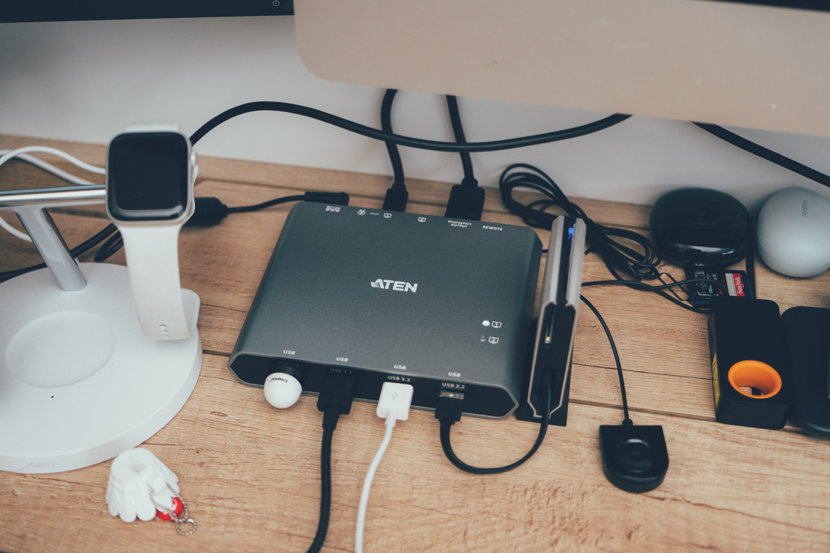 同時有二台電腦的人,很多人可能會直接共用一台螢幕,或者就各別一台螢幕,滑鼠、鍵盤也各一組,好處是各別使用可以同時使用,缺點是所有的東西都要分二組,如果共用螢幕的,切換上也沒那麼方便,所有週邊都要換來換去,今天來分享一款共用電腦週邊、螢幕必備的神器:ATEN USB-C KVM雙平台切換器(US3311),只要一鍵就能輕鬆的在二台電腦之間切換自如。