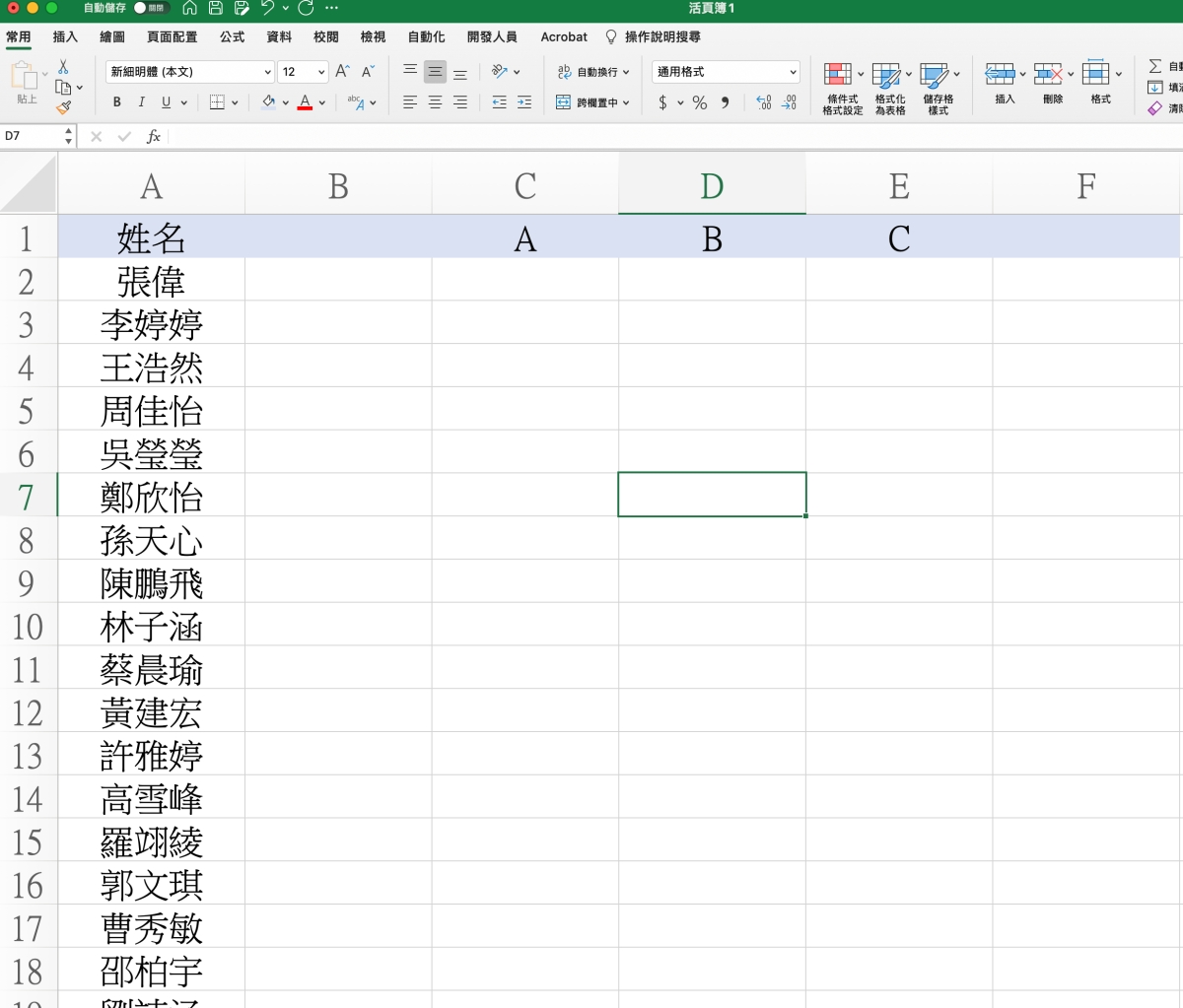 首先,我們需求像這樣,有一組名單,我們想要讓他直接照順序填入 ABC 三組,要怎麼做呢,下面我分成二種說明,來看一下。