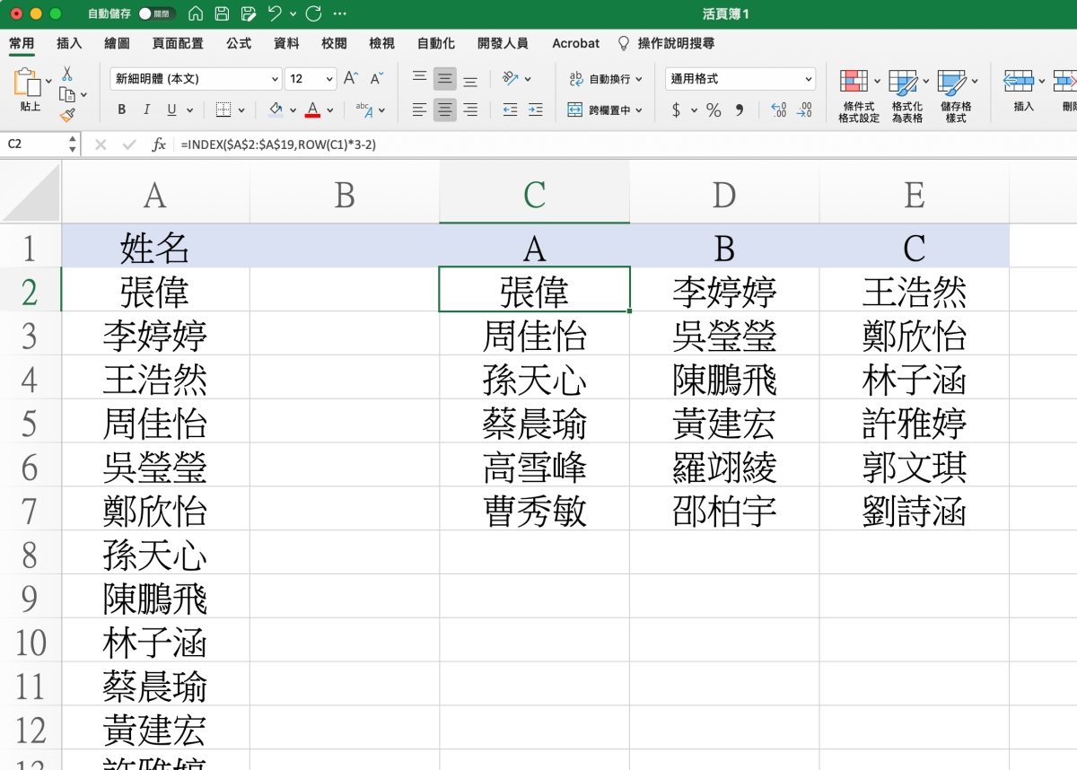 再來是隨機分組的部份,如果你只需要在名單後方填入組別,那麼可以參考這篇: