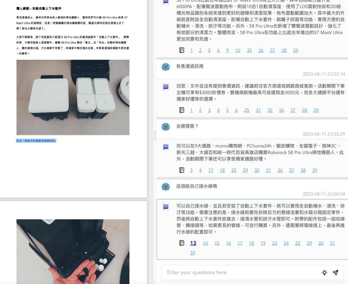 另外,除了既有問題外,你也可以自行提問,他都會像 ChatGPT 一樣,直接依據內容回答你問題。