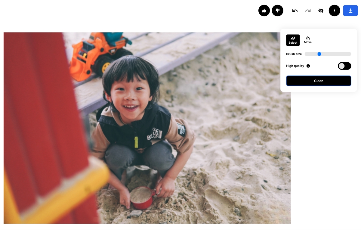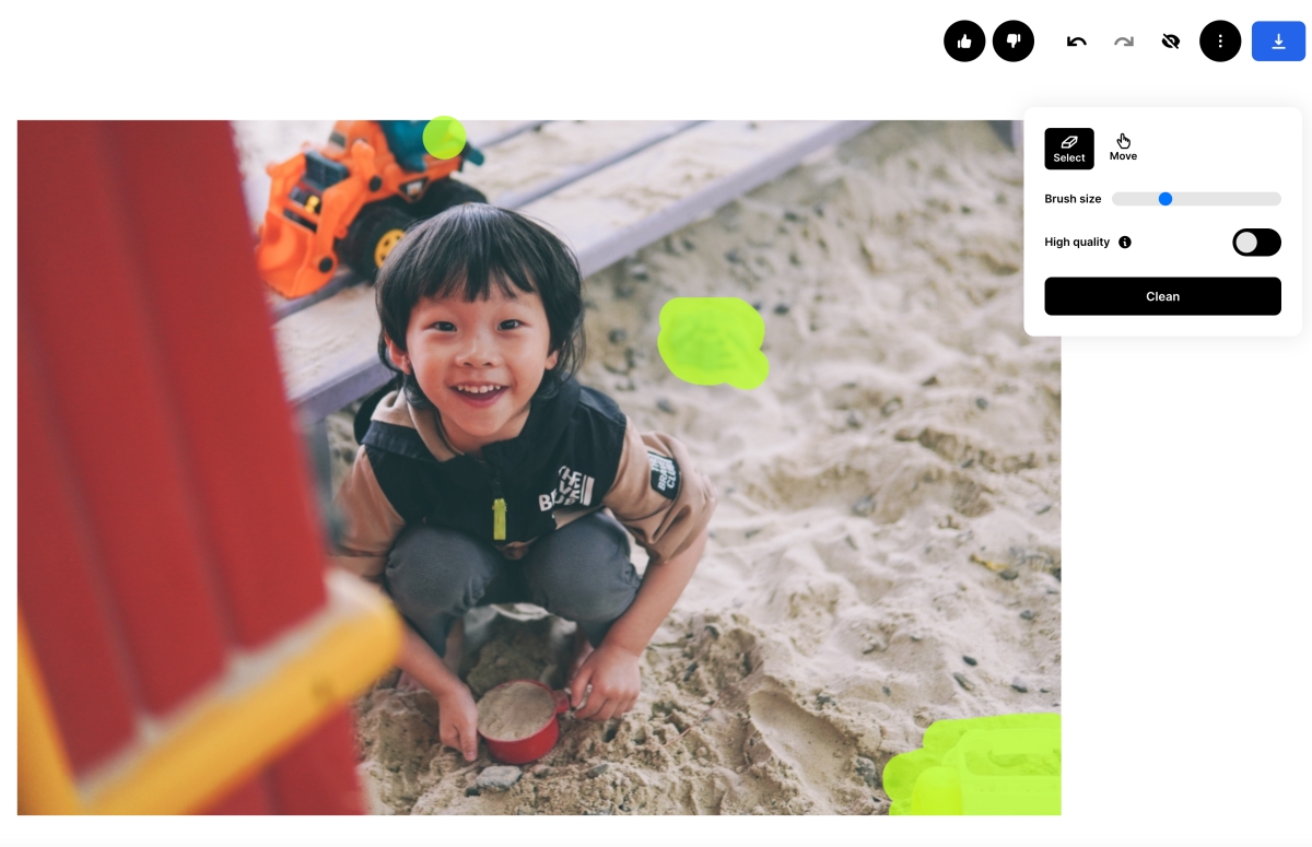 接下來調整要使用的筆刷大小,然後將要去除的物品塗一塗,再按下右側的 Clean。