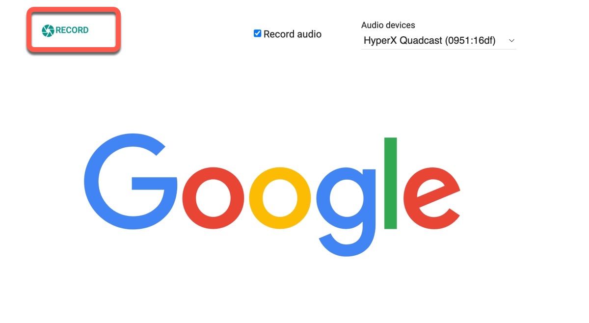 這時瀏覽器會要求權限,都允許就對了,然後選擇你要錄製的聲音來源是哪一個麥克風,勾選 Record Audio 就可以包括聲音,然後按下 RECORD。