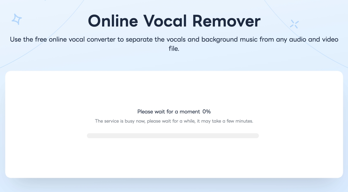 免費使用需要等一下,不過也不會太久,我上傳時出現忙碌,等了大概五分鐘左右就開始執行,執行大約再等了 2~3 分鐘左右就完成了,我去除的檔案大約快八分鐘左右,其實蠻快的,反正是免費,其實上傳後就等就好。