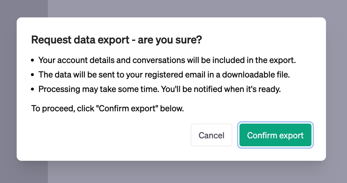 按下 Confirm export 後就會進行會出,並 mail 到你的 Email。
