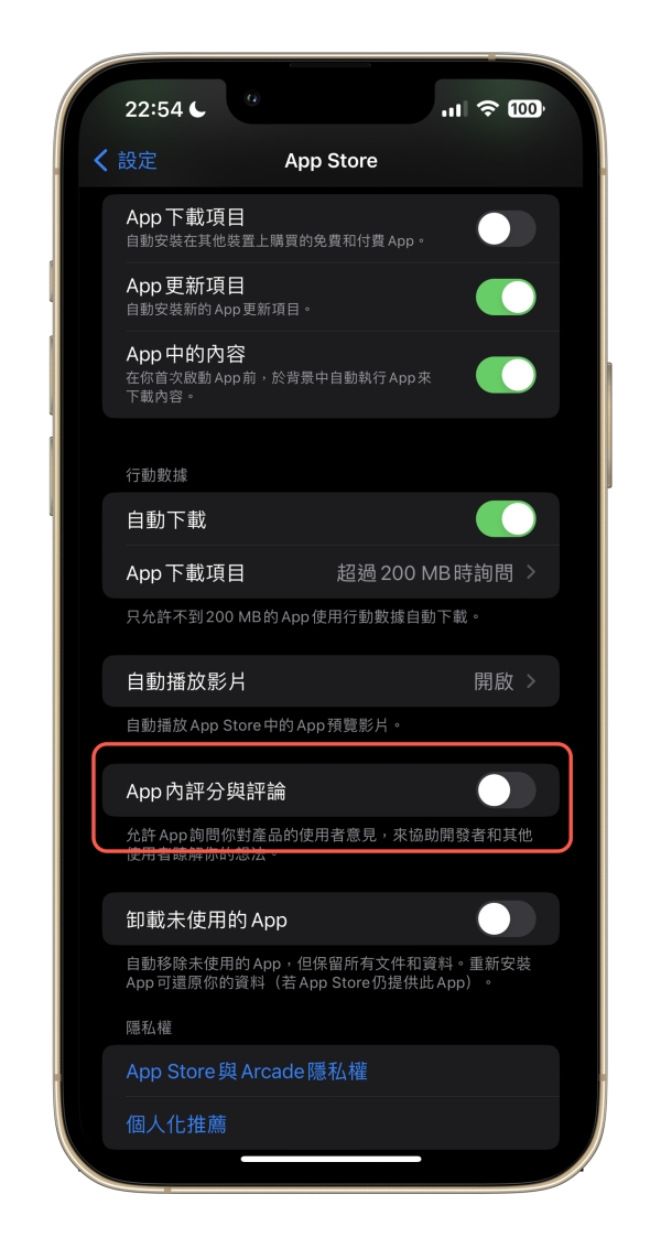 首頁 › 手機應用教學 › 如何不讓 App 跳出要你「評論」的畫面?(iOS 教學) 如何不讓 App 跳出要你「評論」的畫面?(iOS 教學) 發佈日期:2023/5/4 作者:阿湯 分類:手機應用教學 今天一樣來解答鄉親們的問題,昨天被問了一個其實應該很多人也很困擾的問題,就是每次在使用 App 時,用到一半或要關閉前,就會跳出「要你評論 App」的畫面,就是要你去 App Store 留言並打星星啦,當然,這並不是件壞事,畢竟透過大家的評論資訊也能決定這個 App 的好壞,不過很多人並不在意,覺得這個半路會跳出來的東西很煩人,其實我們是可以自行選擇要不要關閉它的,往下來教大家怎麼關掉。 如何不讓 App 跳出要你「評論」的畫面? 很簡單,先進到你的設定頁面,然後找到「App Store」。 進入後往下拉就可以看到「App 內評分與評論」的選項,只要把它關閉,以後就再以也不會在 App 中跳出畫面囉。 延伸閱讀 反詐戰警 - Whoscall 的替代方案,免費一年試用,還有 VPN 網路防護功能 2024/12/11 如何直接從 iCloud 下載全部的照片?還能一次備份在 iCloud 上的各種資料 2024/9/23 iPhone 小技巧,在電量低於 20% 前,自動開啟「低耗電模式」,避免電量常態過低 2024/8/2 在 iPhone 拍出 徠味的 App「Leica LUX | Pro Photo Capture」, 徠卡官方推出的相機 App 2024/6/11