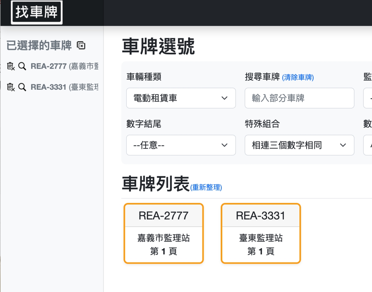 找到想要的車號時也可以先加到左側欄,最後再依找到的車號前往監理所去申辦就可以了。