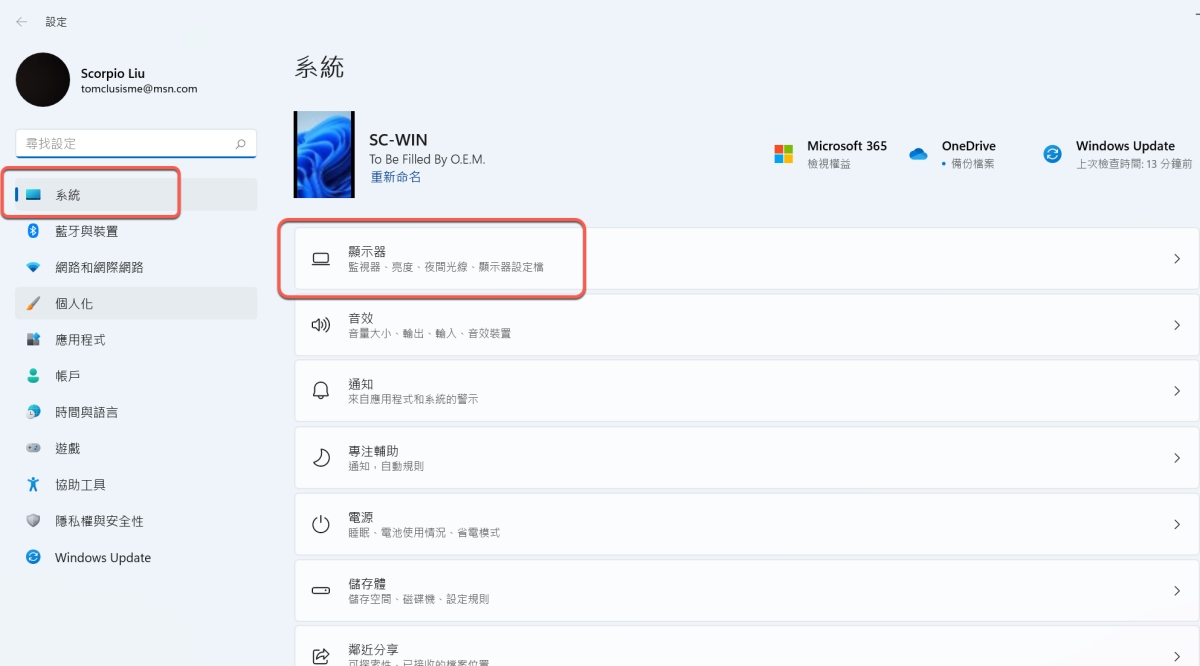 Windows 設定方式跟 Mac 基本上大同小異,同樣進入設定畫面後,點擊系統 > 顯示器。