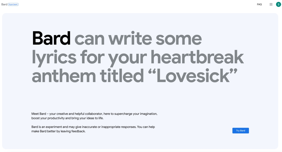 Bard 你可以看到,旁邊還有實驗功能的字樣,想試試的直接用 Google 帳號登入後就可以進到頁面開始試用。