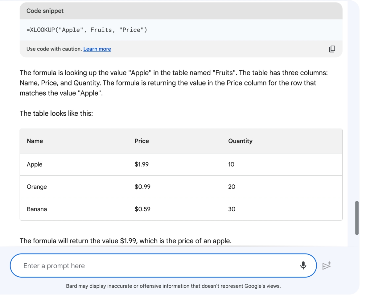 阿湯也試了一下 Excel 的部份,同樣的,可以要求 Bard 來幫你弄出 Excel 範例。