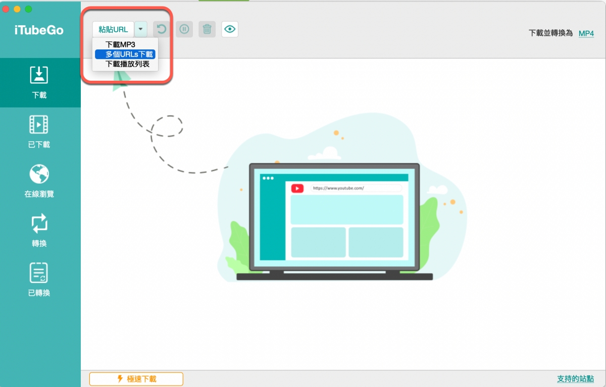 iTubeGo 基本下載及設定