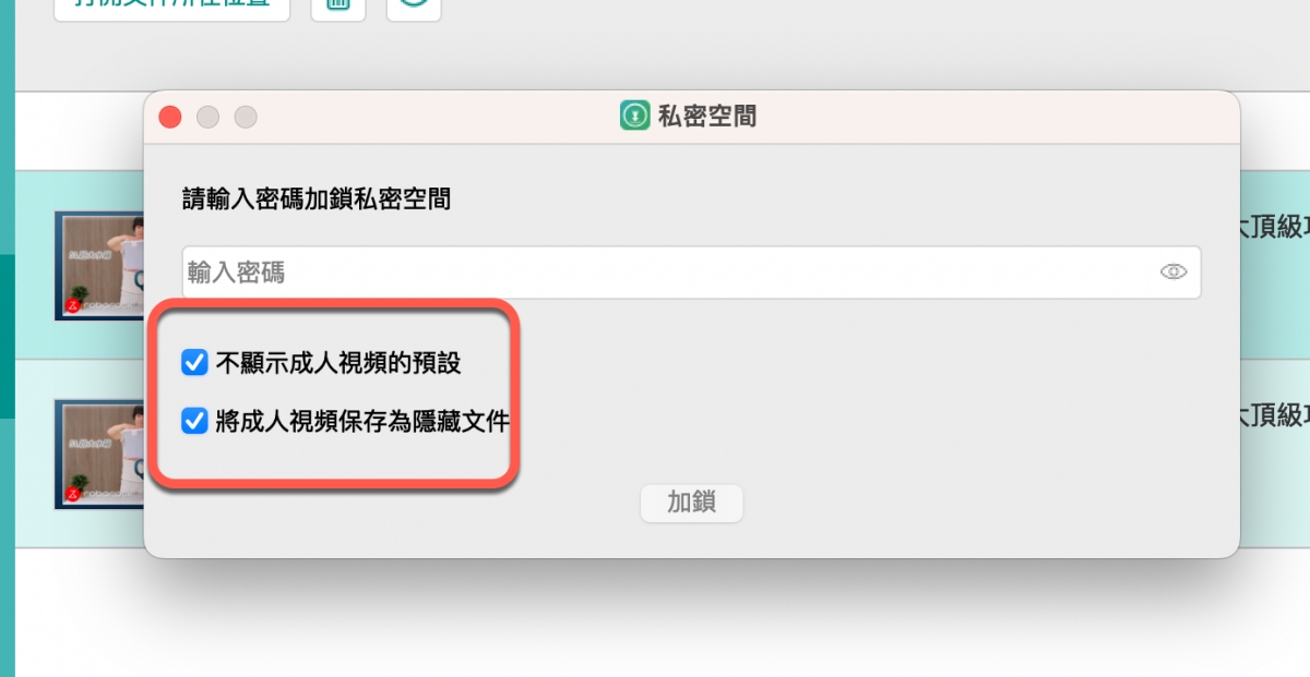 這時會要你設定一組密碼,之後如果要查看私密空間的列表就要輸入密碼才可以,給你下載謎片也能保有一些隱私啊。