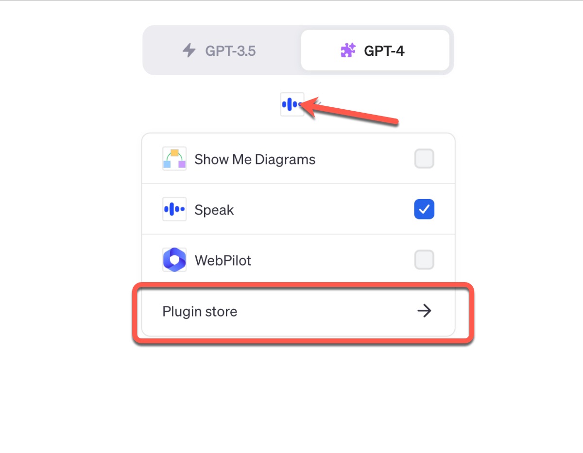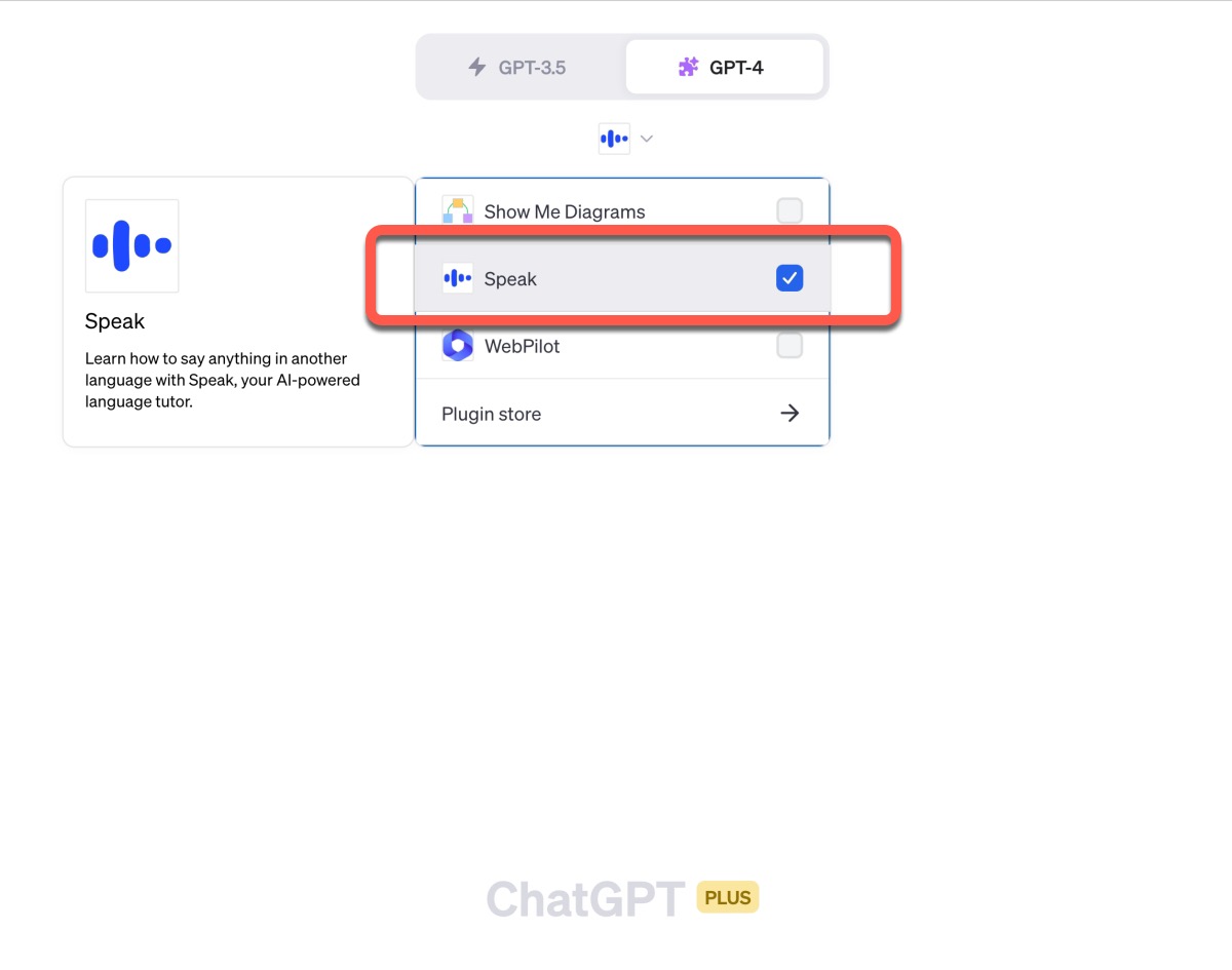 安裝後選擇 GPT-4 時,插件下拉就可以把 Speak 勾選起來,這插件一次最多同時可以啟用三個,依需求將常用的勾選起來,就不用每次一直換來換去。