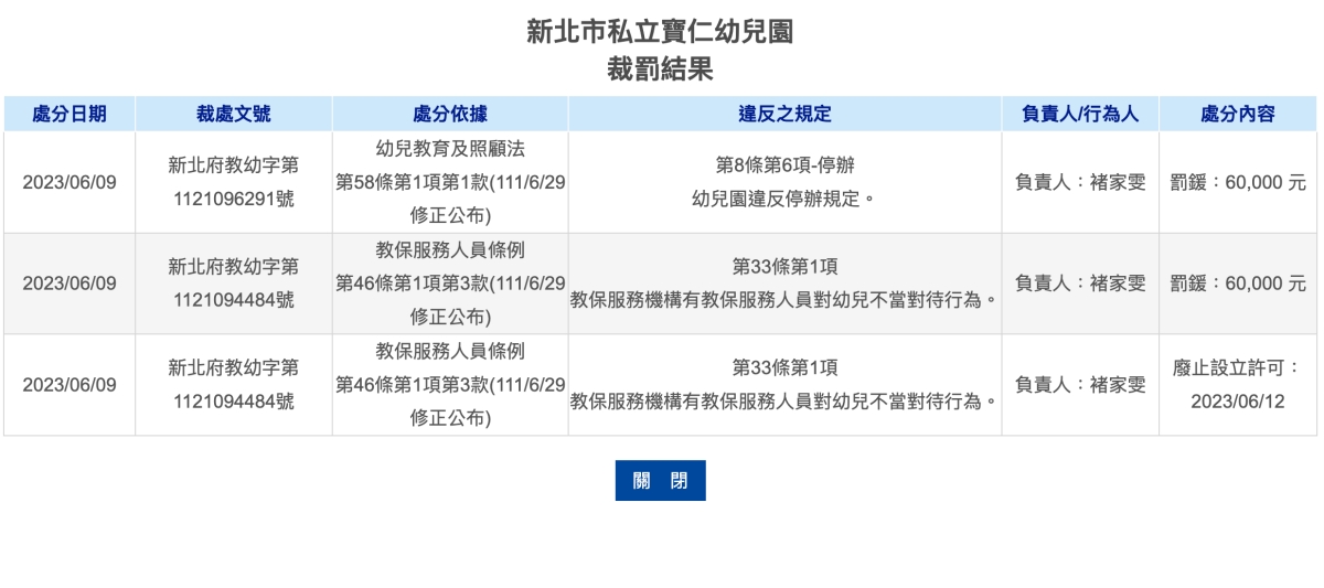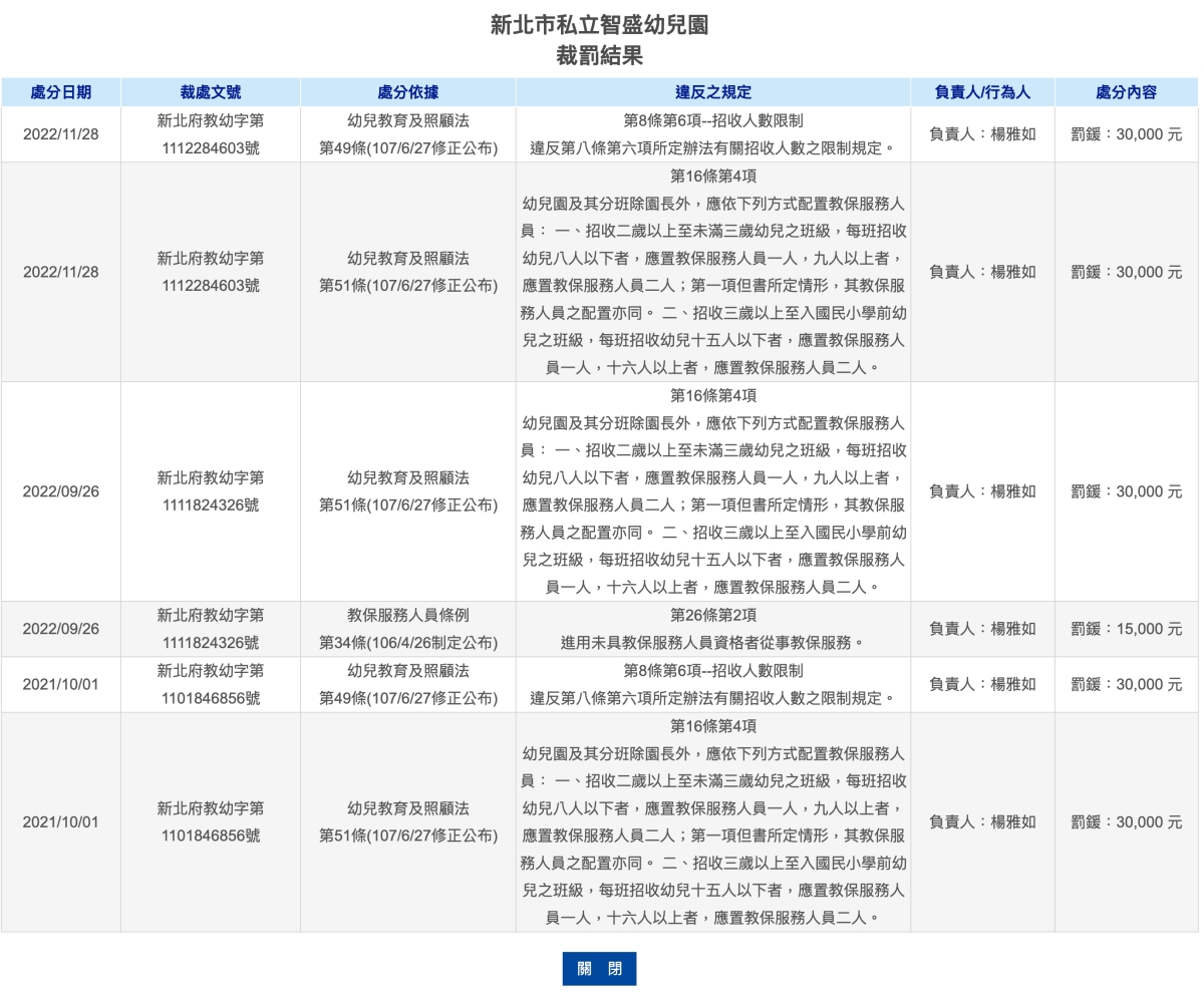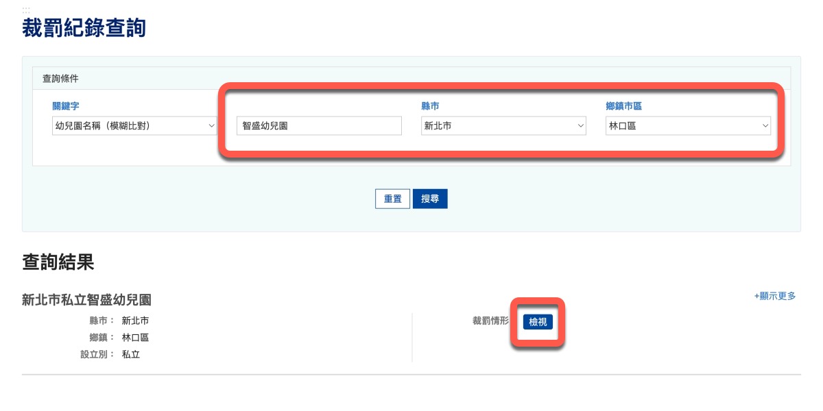 裁罰記錄查詢:https://ap.ece.moe.edu.tw/webecems/punishSearch.aspx
