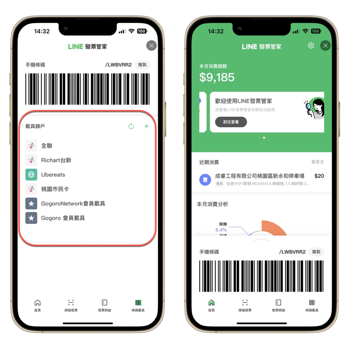 成功綁定後就可以在發票管家裡管理載具,查看消費記錄還有購物分析等,真的非常方便。