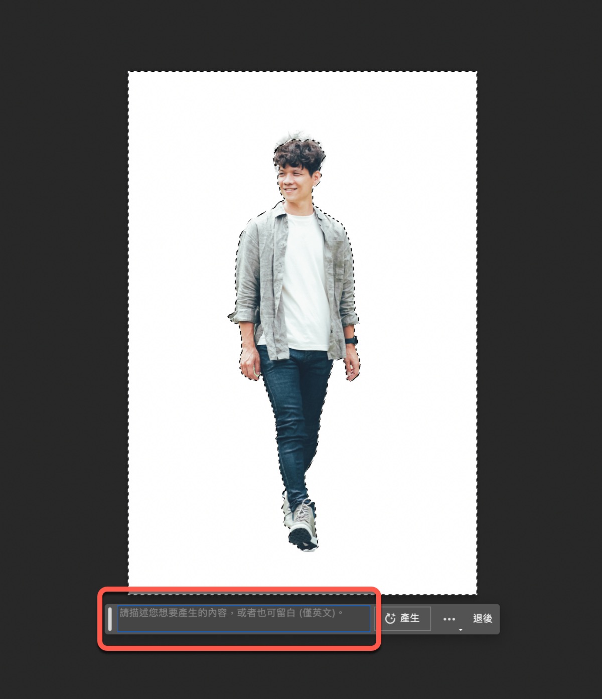 接下來選取你想要生成內容的地方,然後下方就會出現生成填色的功能可以按。