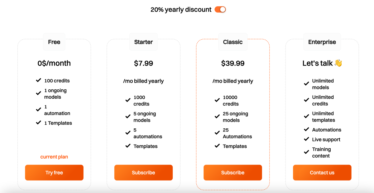 接下來方案的部份可以選擇 Free,每月有 100 個額度可以使用,不過這網站變動方案很頻繁,現在目前是這樣,之後也可能會沒有免費額度或大幅減少。