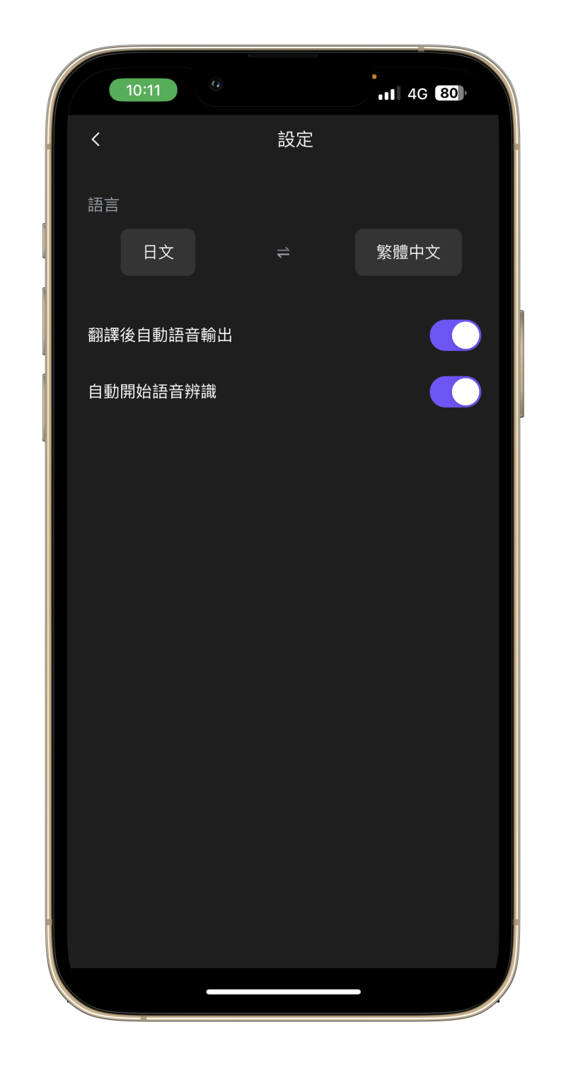 設定裡可以選擇翻譯的語言,也能設定翻譯出來就輸出語音。