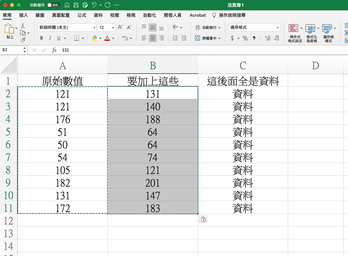 因為我們要做的事就變複雜了?沒有,其實非常簡單,即便上面可以用輔助欄位來相加插入,也是太多餘了,我們只要先複製全部的被加數。